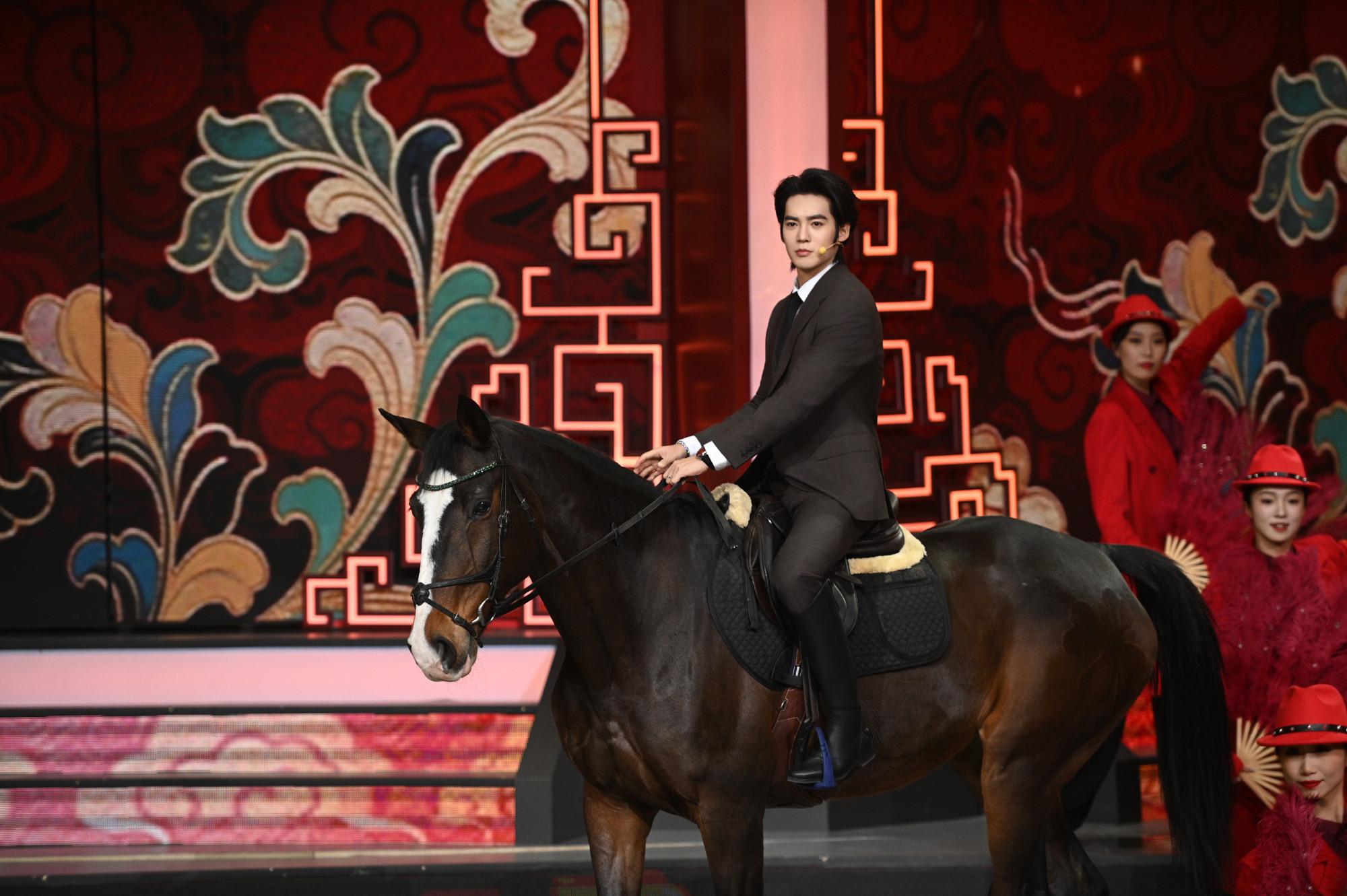 于适直接骑马霸气登场,一方面是因为今年是马年,另一方面是因为于适主演的电影《镖人:风起大漠》将于春节档播出,希望他能够取得优异的成绩。