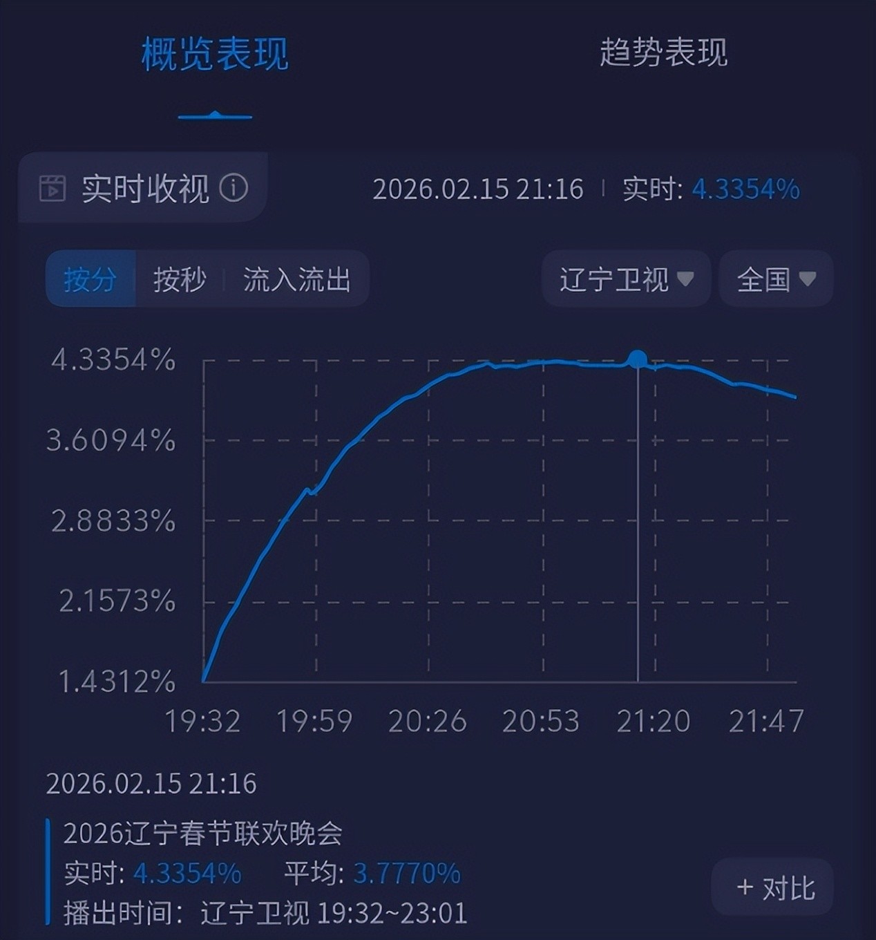 当各大卫视都举行春晚的时候,不仅辽宁省会选择看辽宁春晚,外省也会来看,而辽宁春晚的收视率直接破4,直接证明,大家对辽宁春晚的期待,其实,很久没看到这么高的收视率,网友们忍不住调侃:辽宁卫视靠这一天,就可以把全年的KPI完成了。